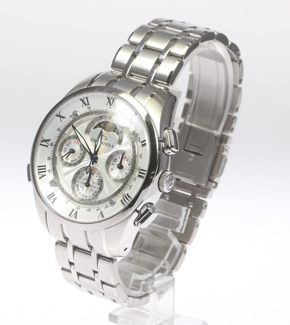 商品管理No. 489317 P3 NA190821 SK 素 材 ステンレス 文字盤色 シルバー 機械タイプ クォーツ Ref.No 9772-T007899 シリアルNo **3 参考定価 \- 機能・特徴 トリプルカレンダー・ムーンフェイズ 【付属品】 本体のみ ケースサイズ(W) 約 42 mm(竜頭含まず) ベルトサイズ(※1) 現状で腕回り最大約 20 cm ラグ幅 約 21 mm 総重量(本体) 約 - g OH歴 - 振動数 - 日差 約 - 秒程度 (平置き・タイムグラファーにて測定) 保証書の購入店 - 保証書の購入日 - 本体ランク C ブレスランク AB ※1:ベルトサイズとは、ケース部分も含めた 総腕回りのサイズになります。