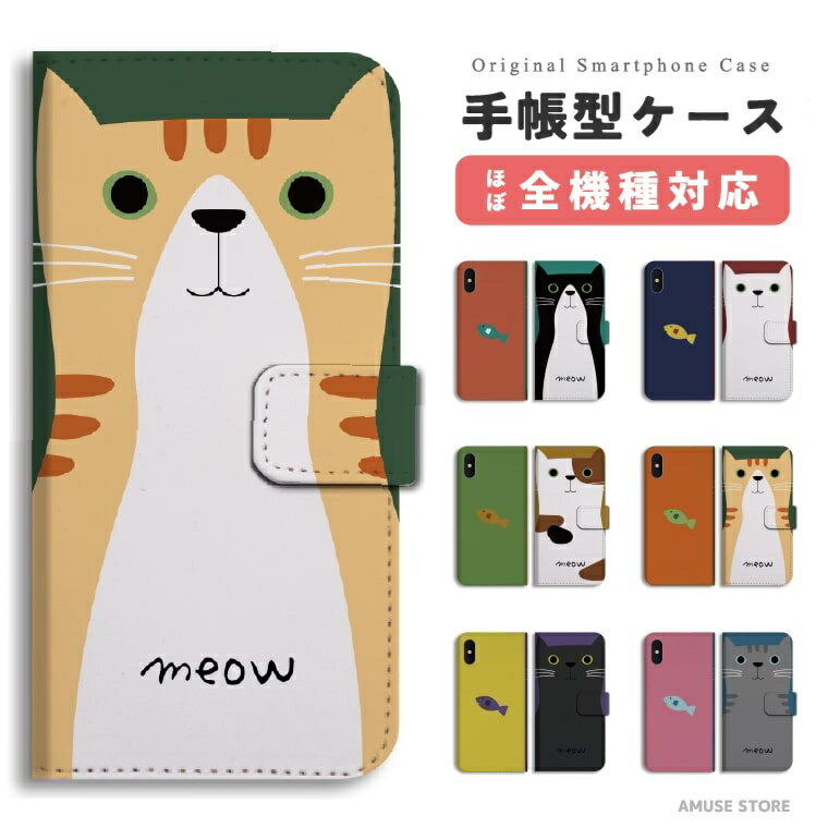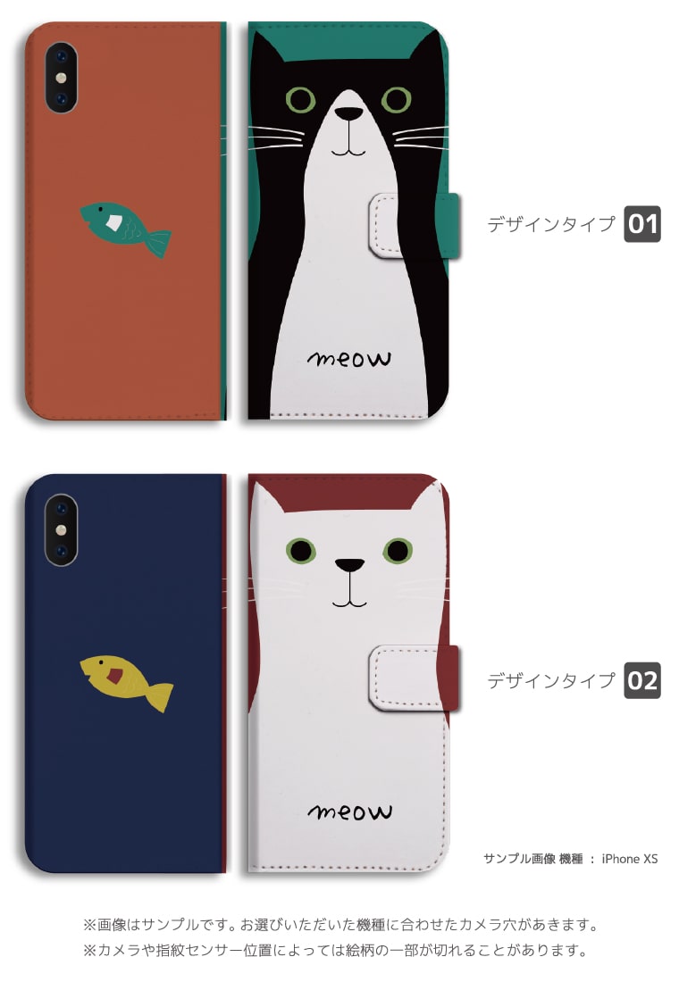 スマホケース 全機種対応 手帳型 iPhone11 iPhone8 iPhone SE2 SE XS XR ケース Xperia 5 8 Galaxy A20 A7 S10 AQUOS sense3 sense2 R3 R2 HUAWEI P30 lite カバー おしゃれ 猫 ネコ ねこ ネコちゃん イラスト バイカラー meow エサ ペット かわいい