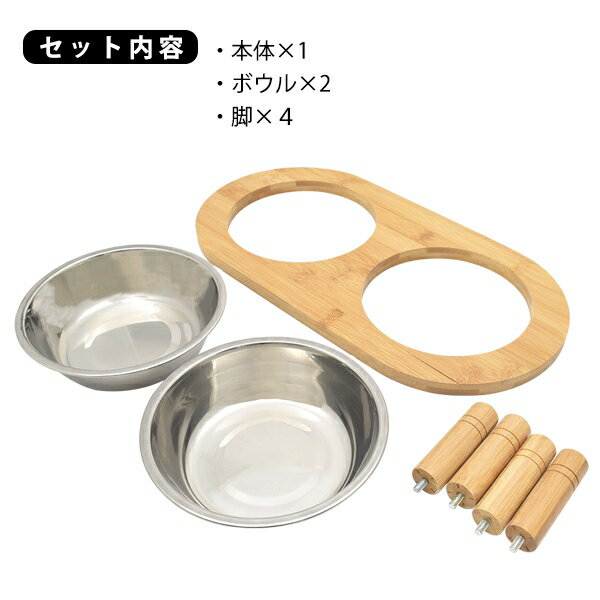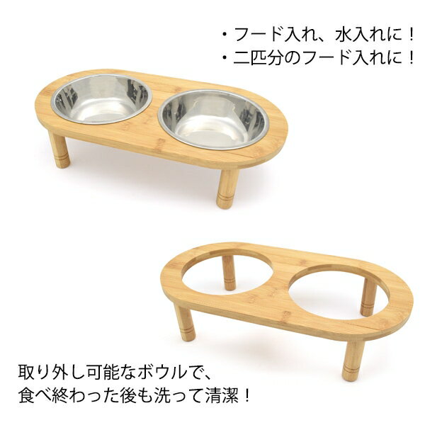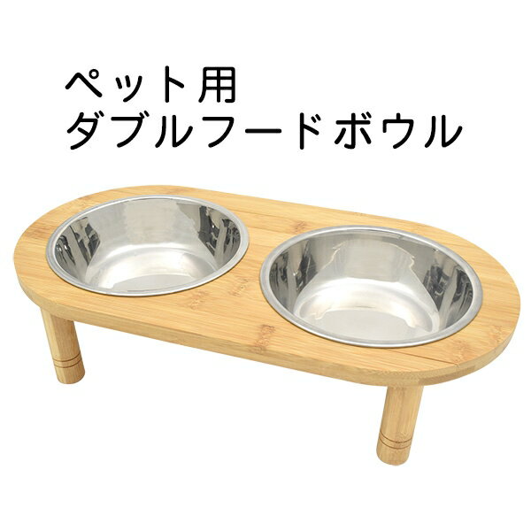 【 送料無料 】猫 犬 ペット用 ダブル ボウル 高さがあるスタンド付 ステンレス製 食器 餌入り ごはん皿 お水入れ (L)